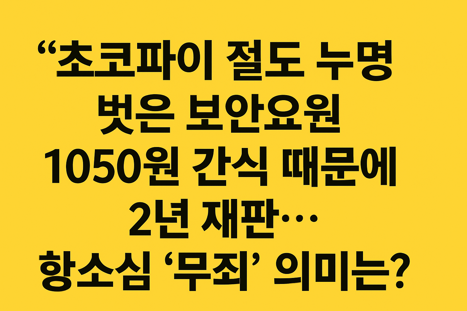 초코파이 절도로 기소된 완주 물류센터 보안요원이 항소심에서 무죄를 선고받았다. 1050원 간식이 부른 2년 재판의 전말과 법적·사회적 의미를 자세히 정리했습니다.