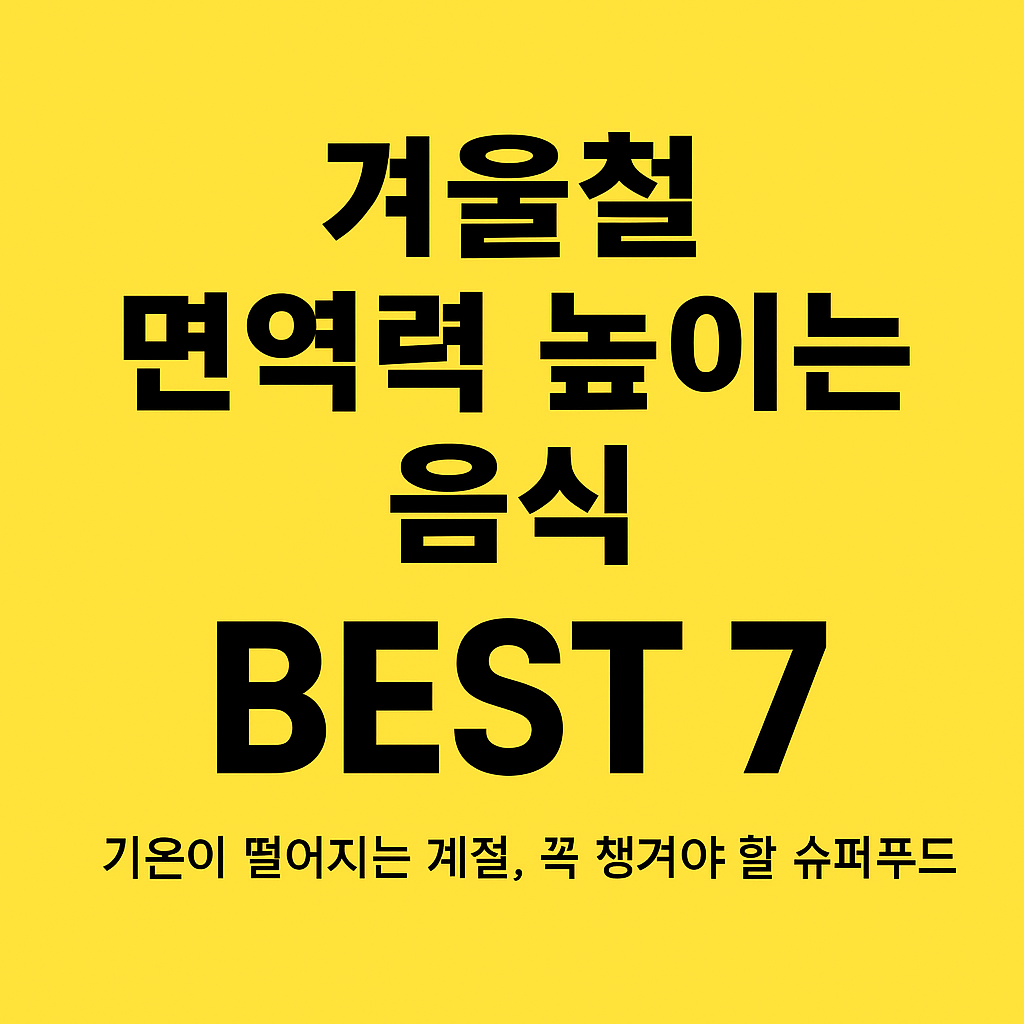 겨울철 면역력 높이는 음식 7가지를 정확한 영양 정보와 함께 정리했습니다. 감기·독감이 급증하는 계절, 어떤 음식을 먹어야 면역력이 강해지는지 과학적으로 알려드립니다.