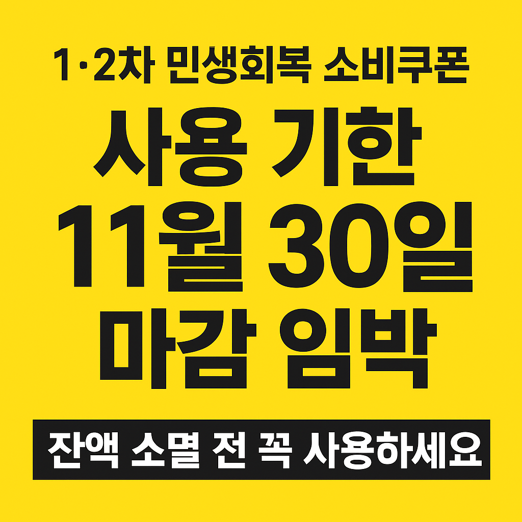 [마감 임박] 1·2차 민생회복 소비쿠폰 사용 기한 11월 30일 종료! 잔액 소멸 전 꼭 사용하세요