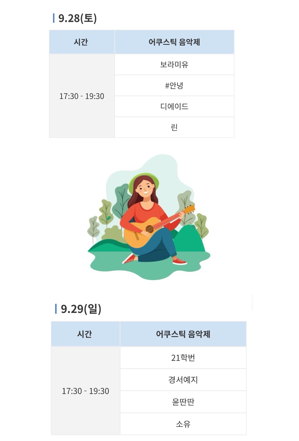 ◼9월 29일 17:30~19:30 21학번, 경서예지, 윤딴딴, 소유