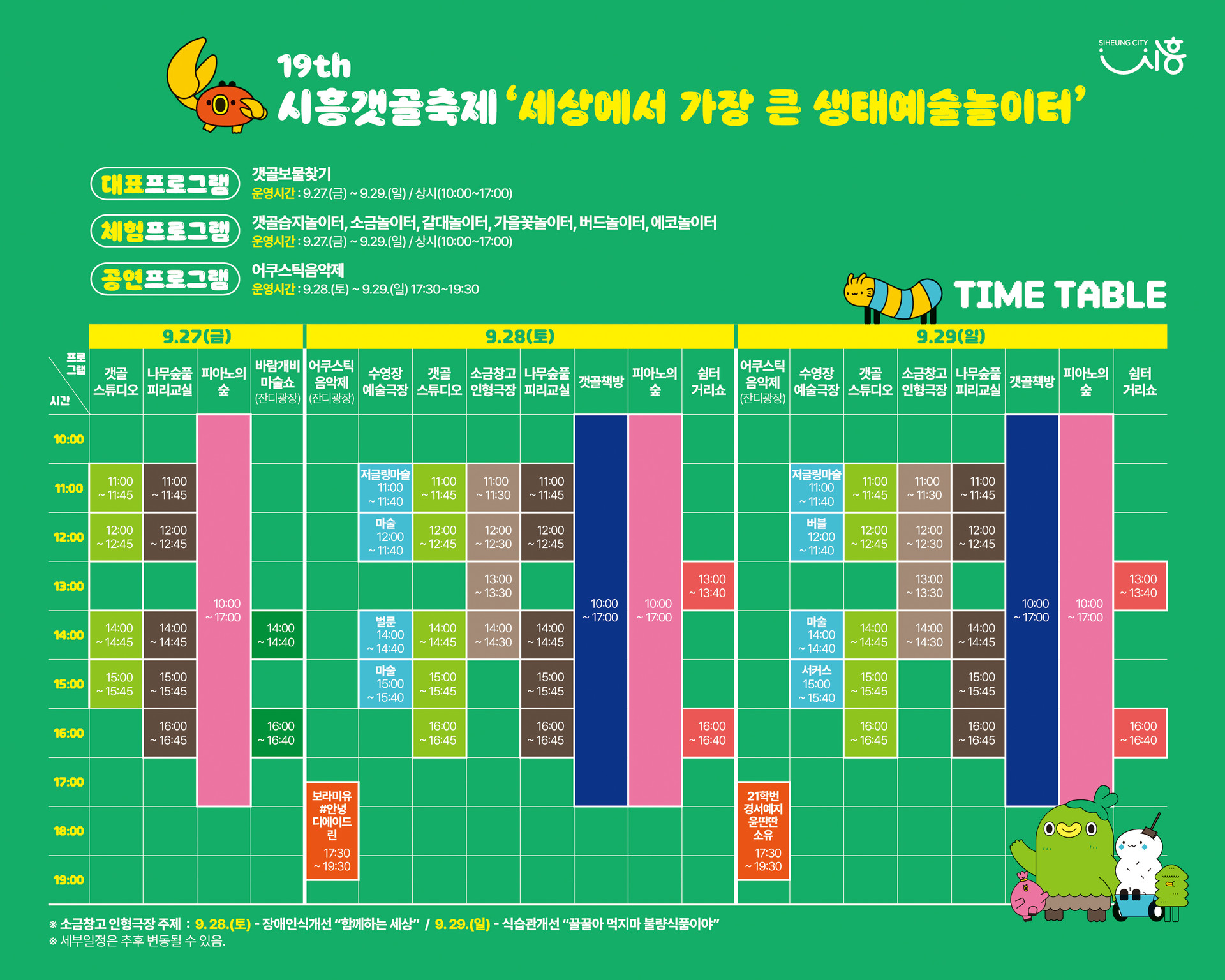 시흥갯골축제는 9월 27일 금요일 ~ 9월 29일 일요일까지 진행되며