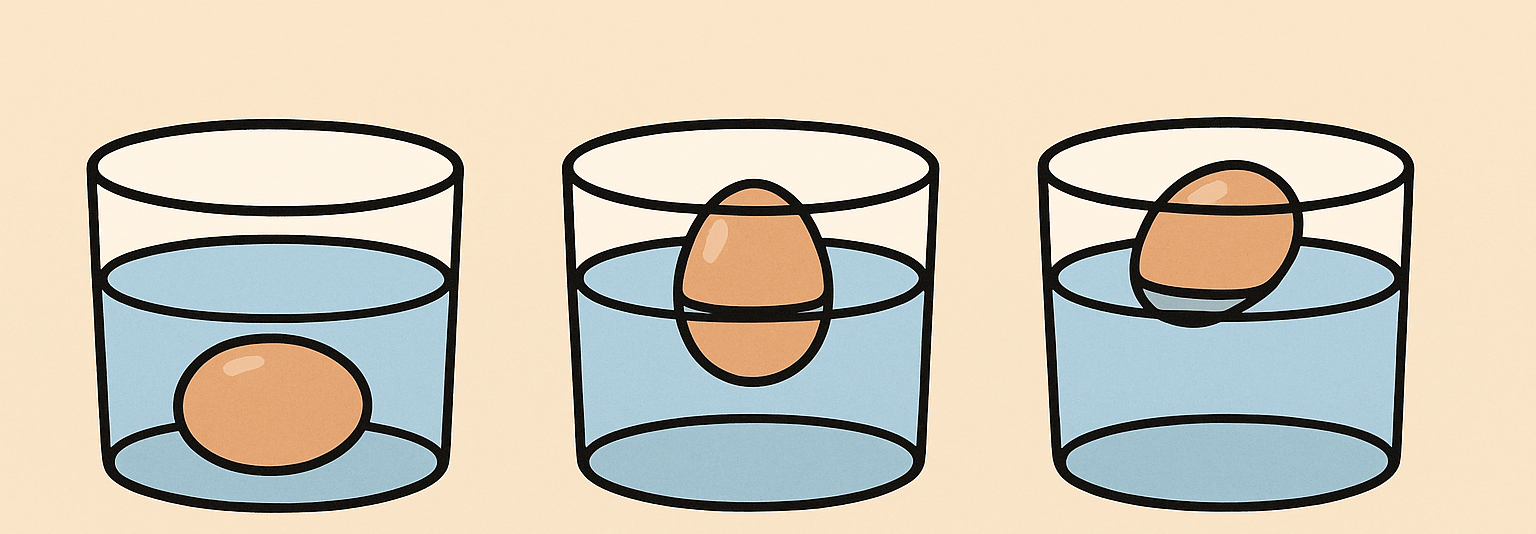 달걀 내부에 공기주머니가 생기면서 시간이 지날수록 달걀이 물에 뜨게 됩니다.※