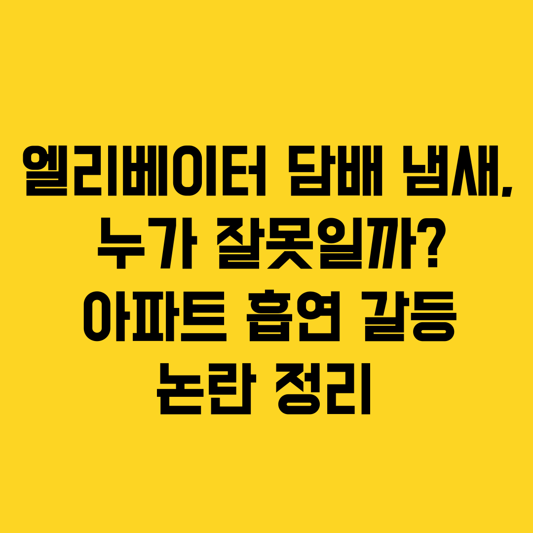 아파트 엘리베이터 담배 냄새를 둘러싼 입주민 갈등이 SNS에서 화제가 되고 있습니다. 공용공간 흡연 매너, 법적 기준, 현실적인 해결책까지 정리했습니다.