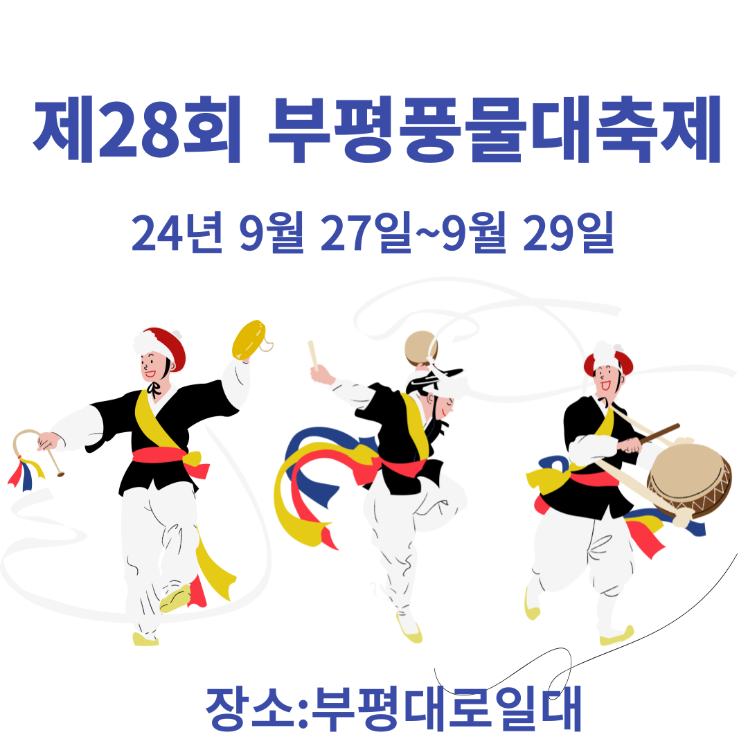 2024년 제28회 부평풍물대축제는 도심 8차선 대로가 축제의 장소로 펼쳐지는 거리축제이며 풍물과 지역의 문화관광콘텐츠를 결합하여 공연문화와 풍성한 볼거리, 다양한 체험을 만날 수 있는 축제이다. 그럼 제28회를 맞이한 부평풍물대축제 정보 알아보겠습니다.