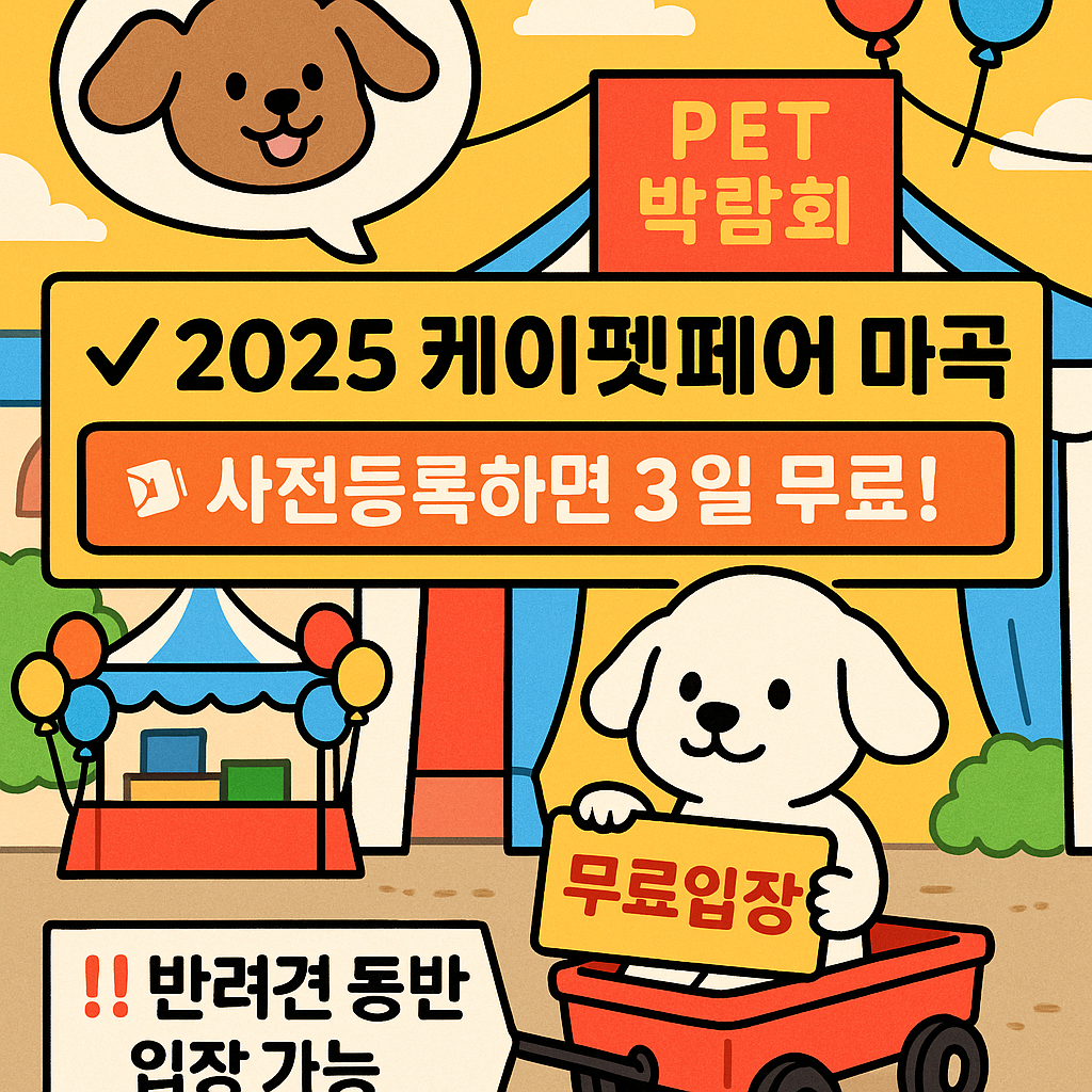 반려동물을 위한 국내 최대 박람회, 2025 케이펫페어 마곡이 드디어 열립니다! 다양한 펫용품부터 전문가 상담, 체험 프로그램까지! 반려인이라면 놓칠 수 없는 이 행사의 일정, 장소, 사전등록 방법, 입장 규정까지 한눈에 정리해 드릴께요.