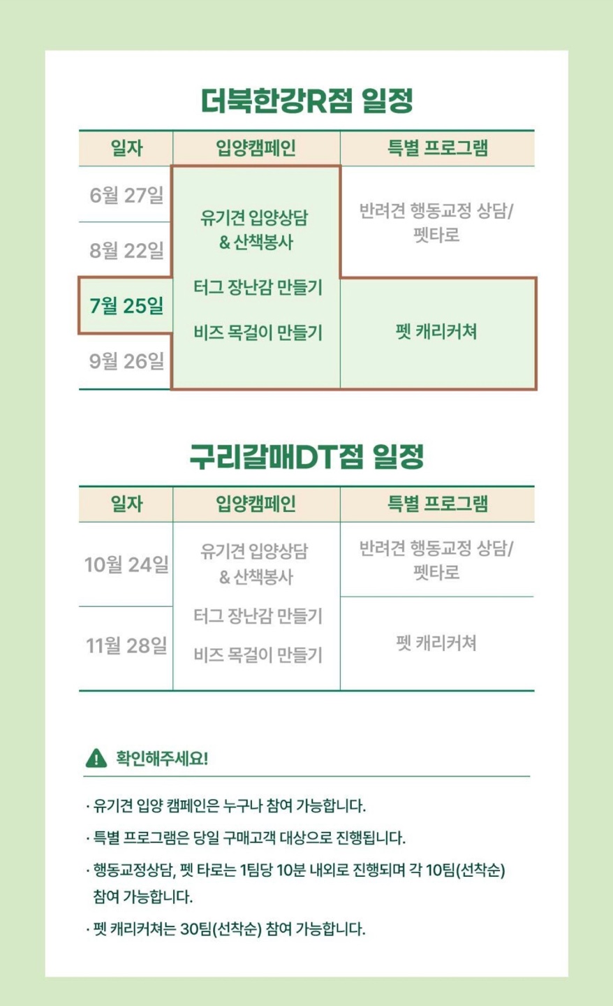 각 지점마다 입양 캠페인과 다양한 프로그램들이 준비되어 있어요!