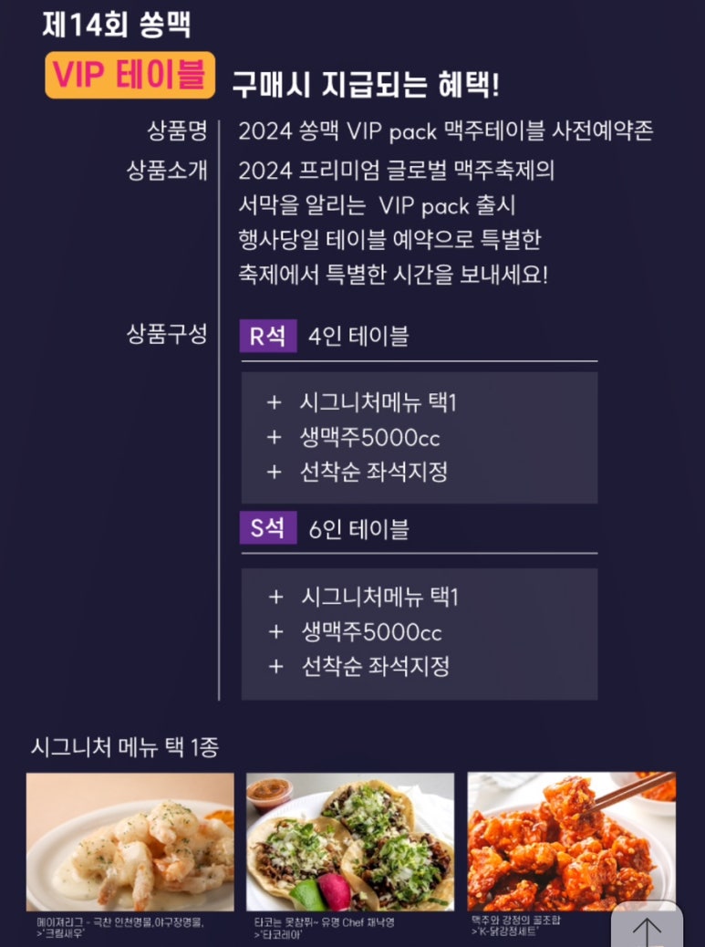 VIP S석 (6인테이블) 110,000원