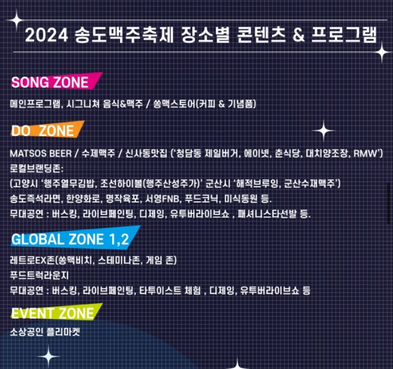 이번 2024 송도 맥주축제는 매일매일 다채로운 행사와 다양한 먹거리 그리고 풍부한 볼거리까지 준비된다고 한다.