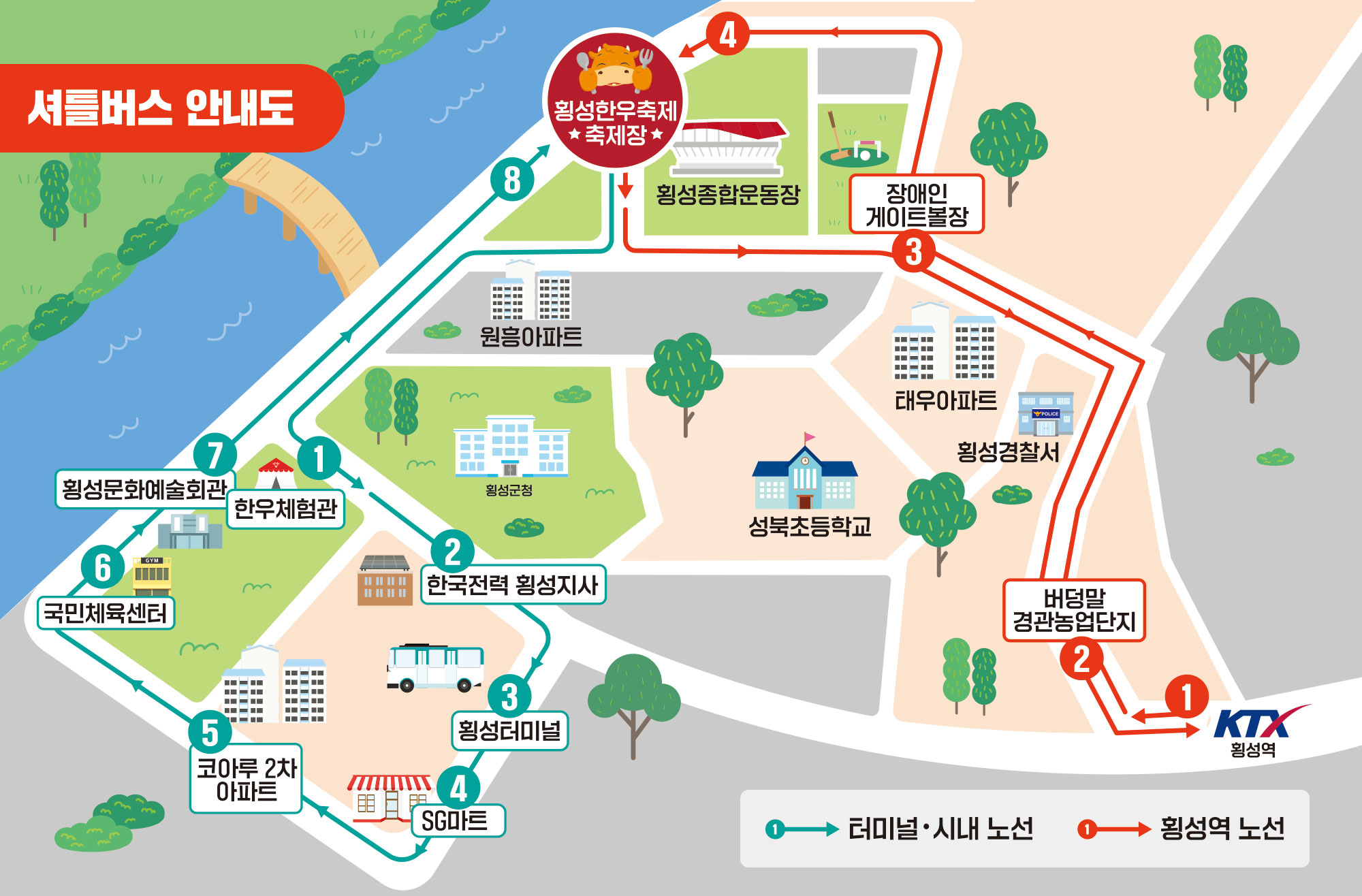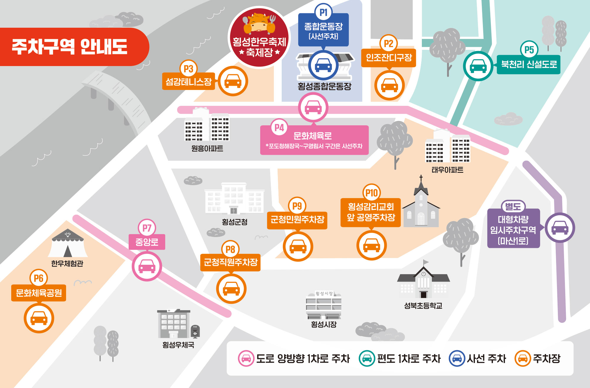 출발하시기전 주차장 확인하시고 안내도 확인하시면 보다 알차게 횡성한우축제를 즐길 수 있을 것 같습니다.