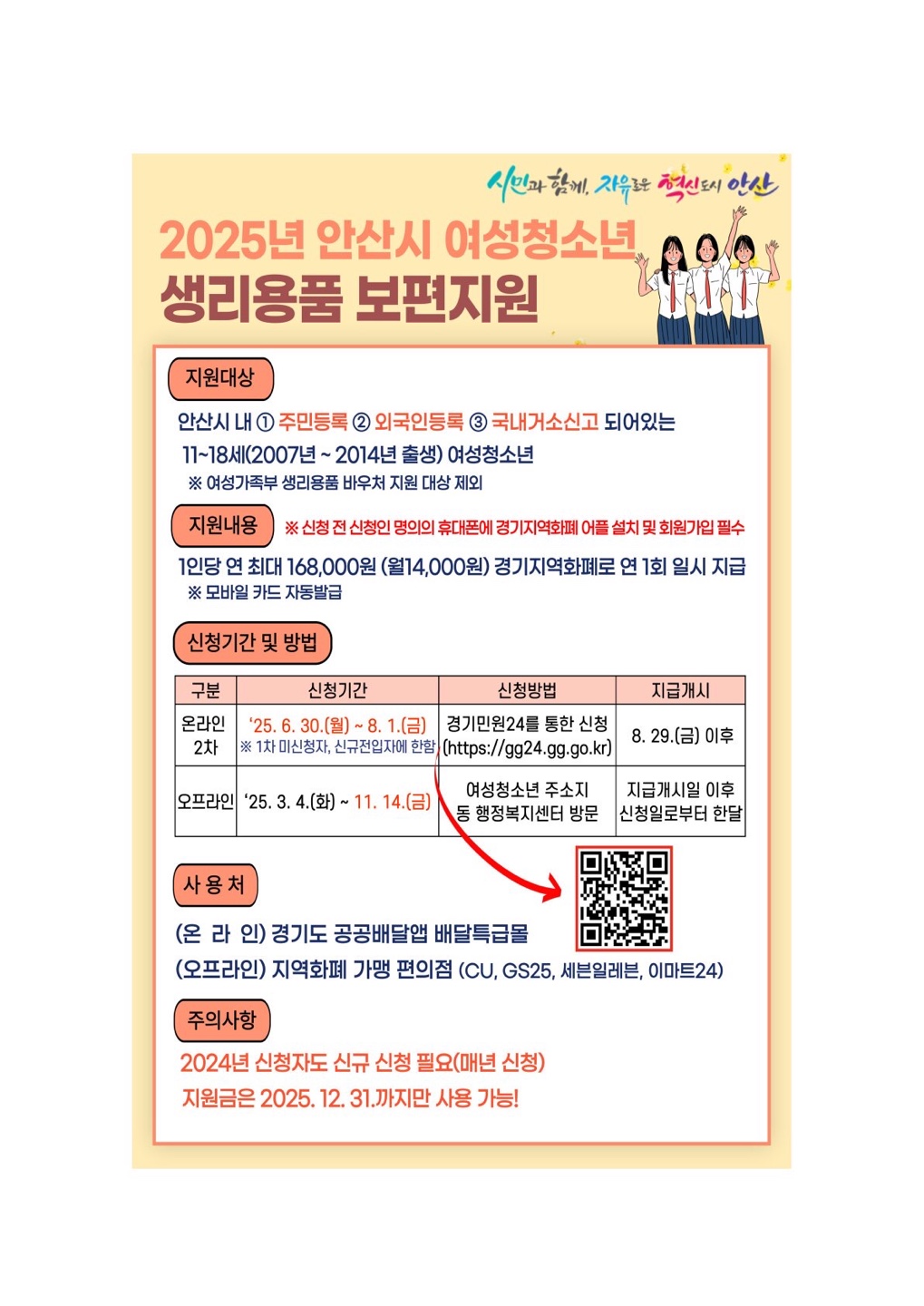 매년 신청해야 하는 안산시 여성청소년 생리용품 보편지원 사업이 2025년에도 계속됩니다.